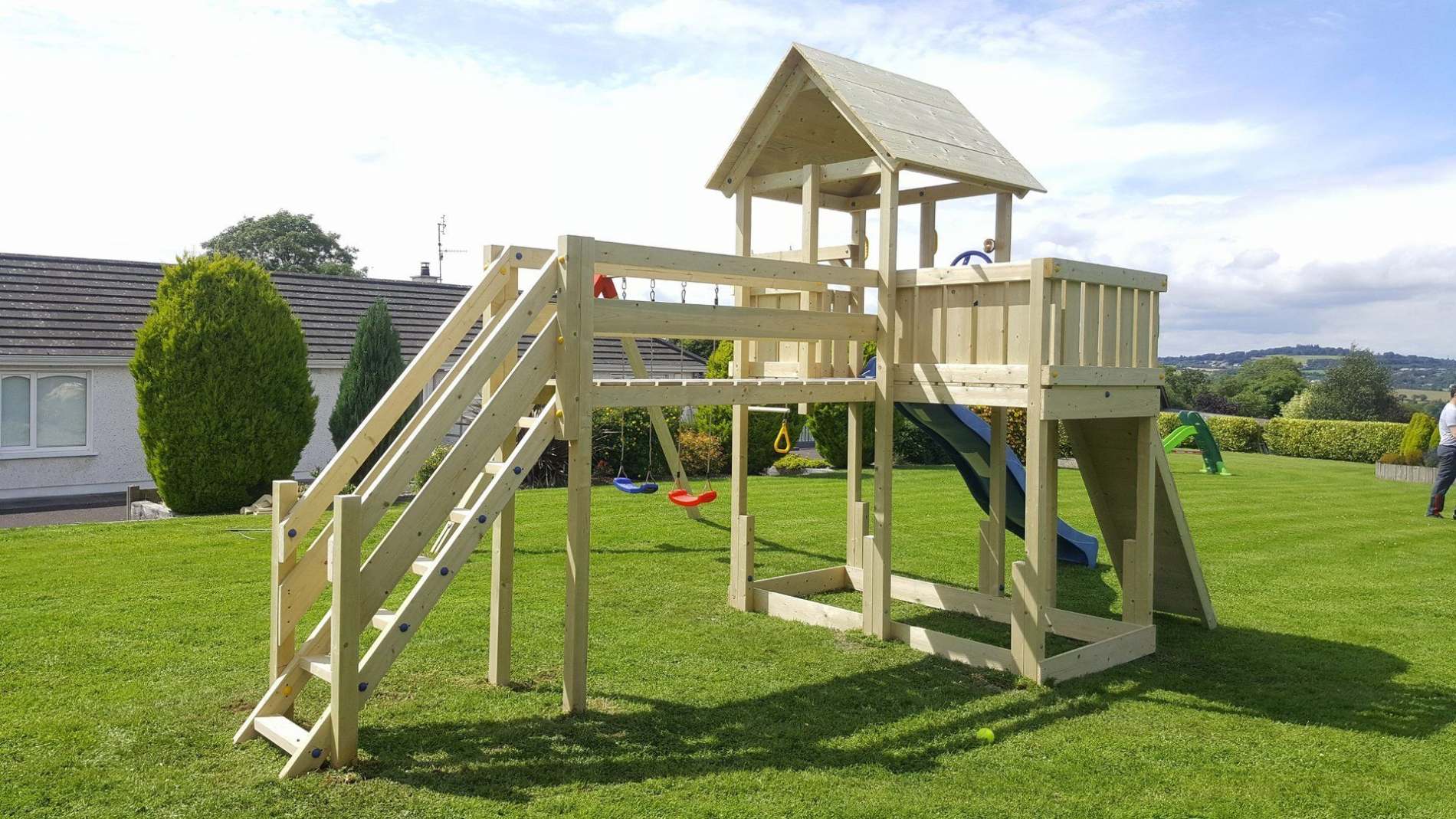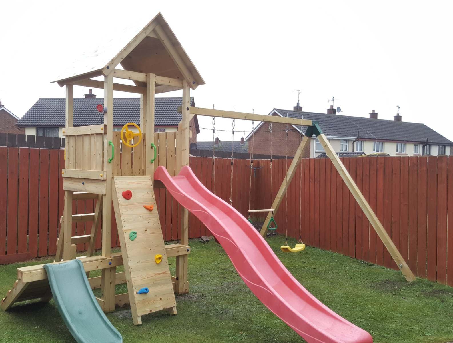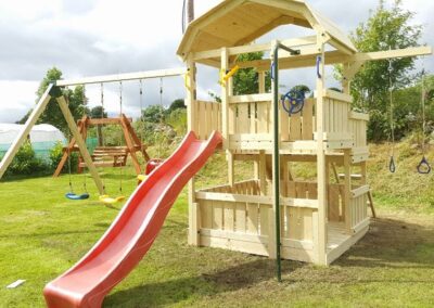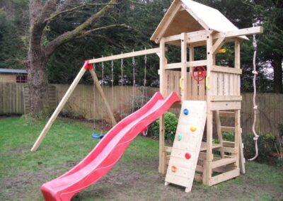 Dinsmores Climbing Frames is a friendly, family business. For more than 15 years we have been making bespoke climbing frames, enjoyed by children all across Ireland. Our frames are hand made to a very high specification, so you can be sure that they will enhance any garden and be robust enough to last for a very long time. Our frames are suitable for any garden; we install and level the frames ourselves so you can be sure they are safe. We have a wide choice of climbing frames, so why not give us a call today?