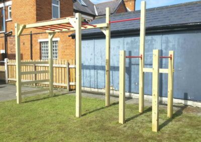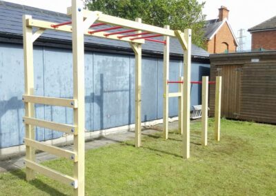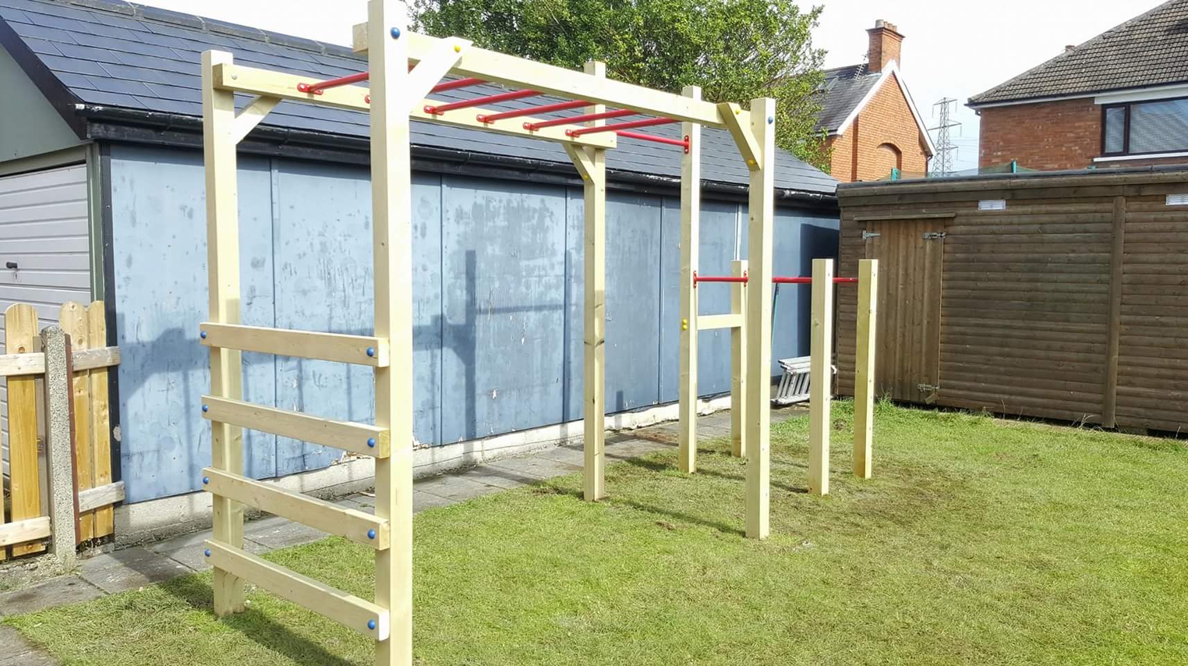 This page provides only a small sample of all the timber exercise equipment that Dinsmores Climbing Frames Manufacture. We manufacture all our equipment using GREENGUARD certified treated timber, so we’re confident that you’re getting the best quality wood for all your outdoor exercise equipment. Get in touch with us for delivery across Northern Ireland.